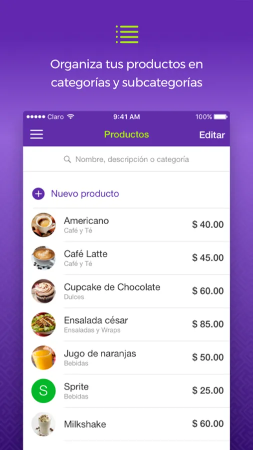 Contarás con una sólida herramienta de administración de inventario, que permite organizar tus productos en categorías y subcategorías para un manejo simple y dinámico.