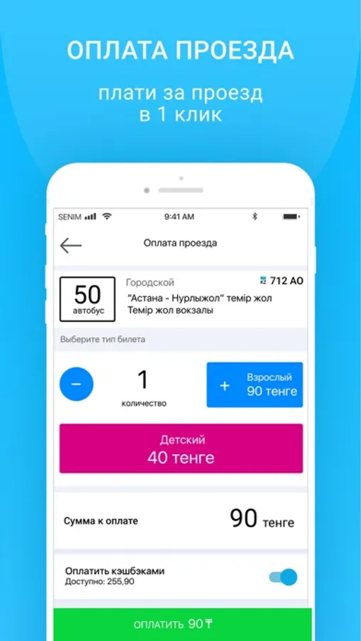 SENIM – это мобильное приложение, с помощью которого можно оплачивать товары и услуги, парковку, проезд на общественном транспорте, покупать билеты в кино и заправлять топливо, не выходя из машины.