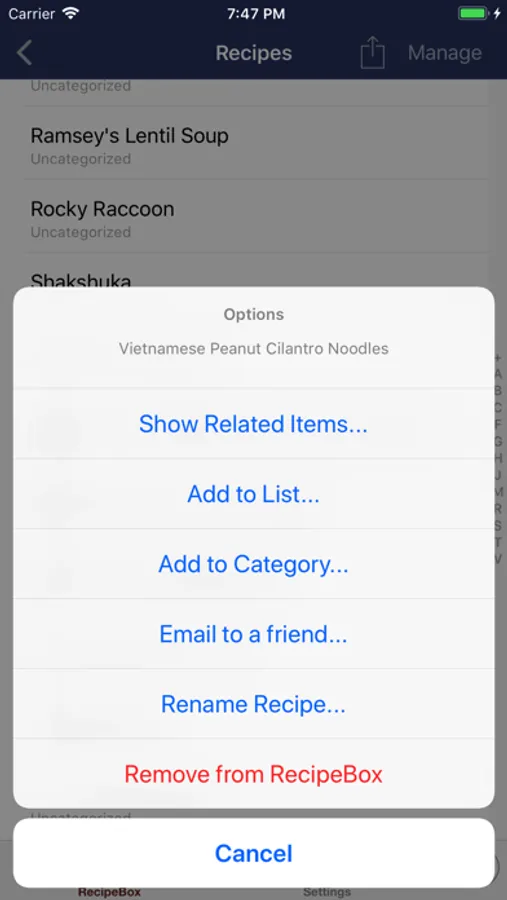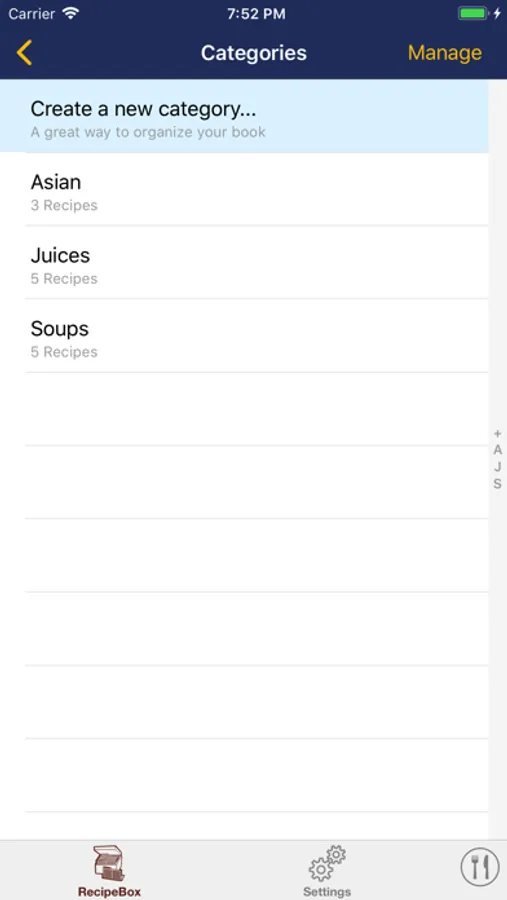 Really, really simple. It's your digital recipe box for all your cooking recipes. Very few frills, no advertising, just an easy way for you to keep track of all your recipes that also make it easy to find them. You can use simple text, or you can even take pictures of recipes you've seen and keep them that way, or import PDF files if that's how you like to document your recipes. You can make lists, and also add your recipes to any category you choose.