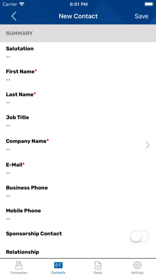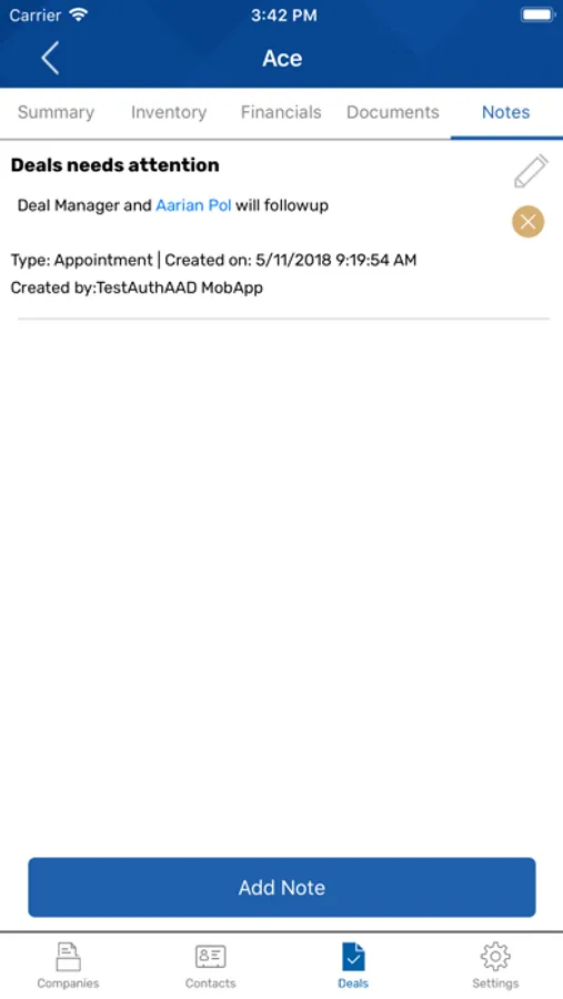 App to enter and maintain deals.