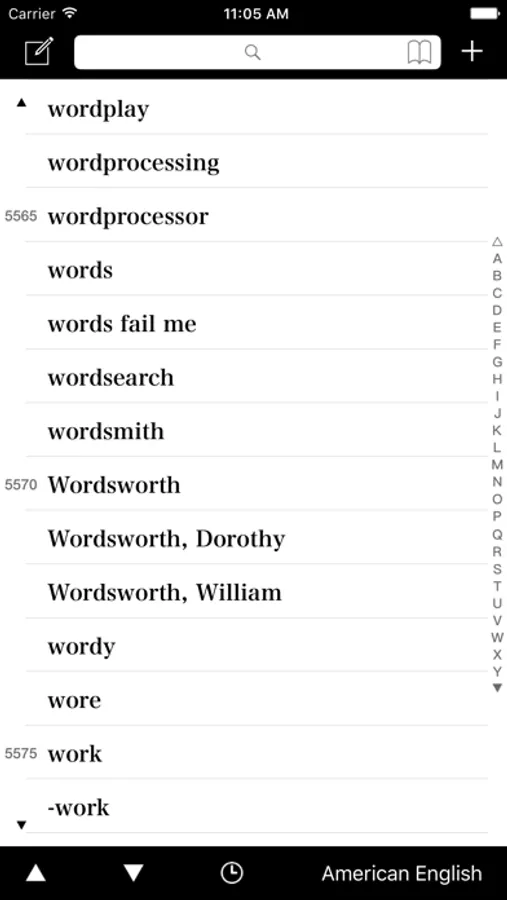 iWordsMill has concept of "flick through words book". It lists all words of 15 languages. And in using the "table of contents, and slider" placed on both sides of words list, you will be able to quickly access to a collection of words.