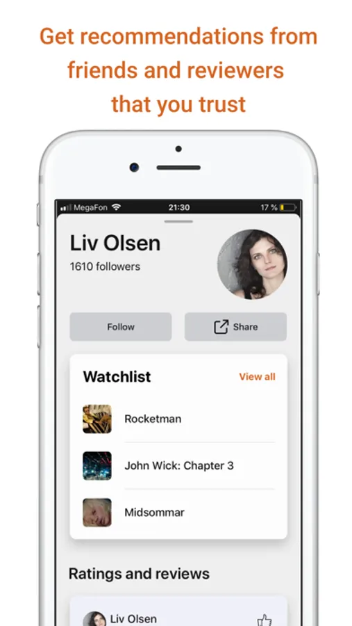 • Add movies you're looking forward to the "watch list" and get a reminder when they come to the cinema.