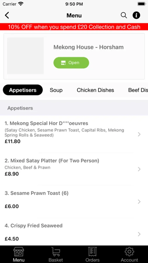 Order Chinese takeaway online from Mekong House in Horsham via our iPhone app.