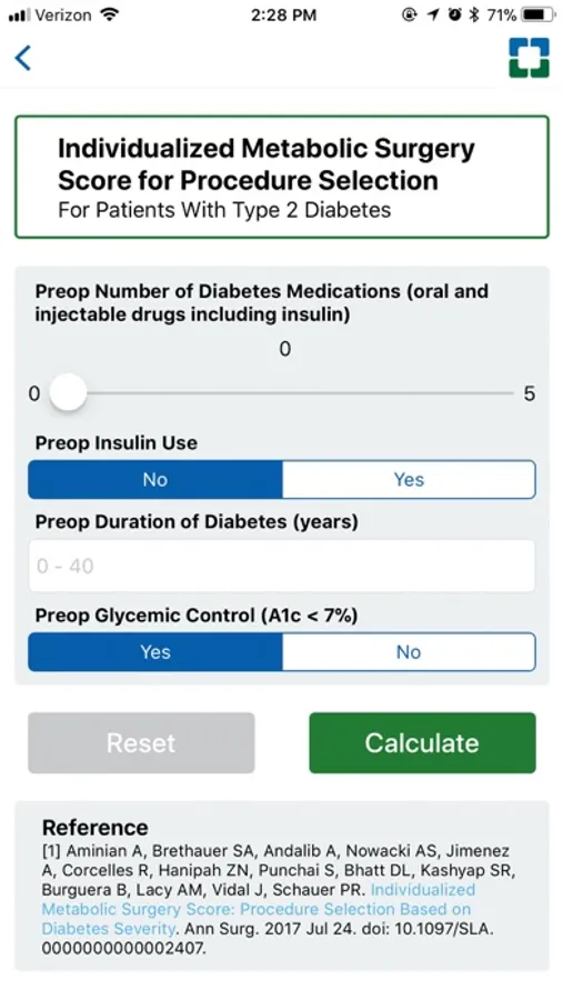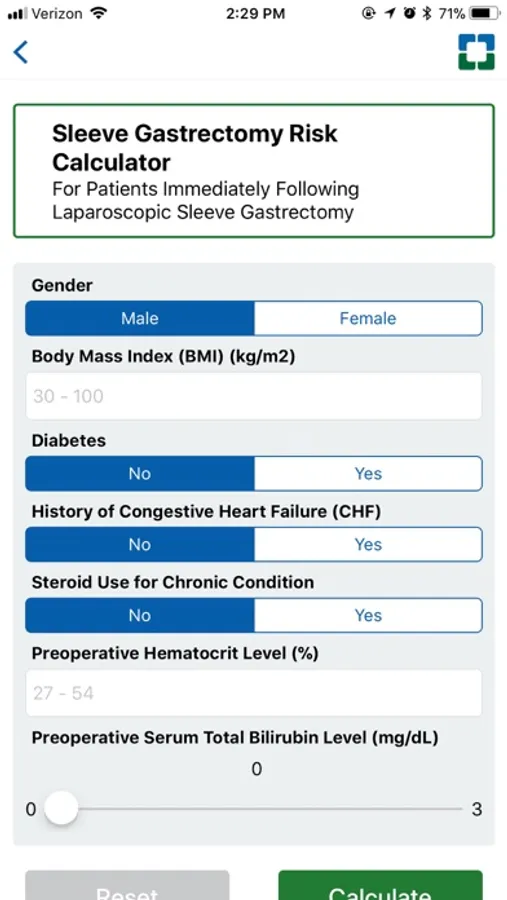 Bariatric Surgery Calculator Screenshots