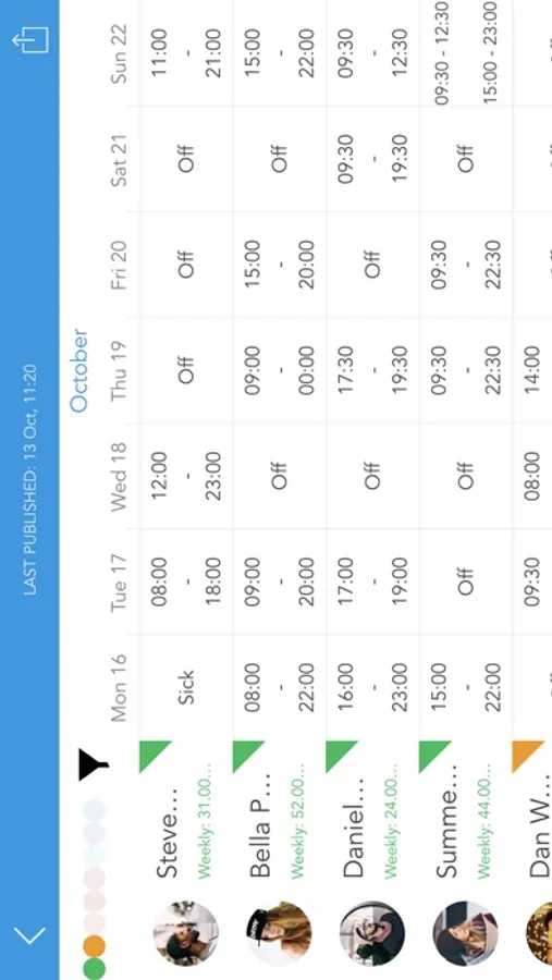 Say goodbye to spreadsheets and scruffy bits of paper for good. Create, share and update rotas via the app. This includes a by-day (portrait) and by-week (landscape) view to help you get straight to the information you need, and copy&paste for faster creation and editing.