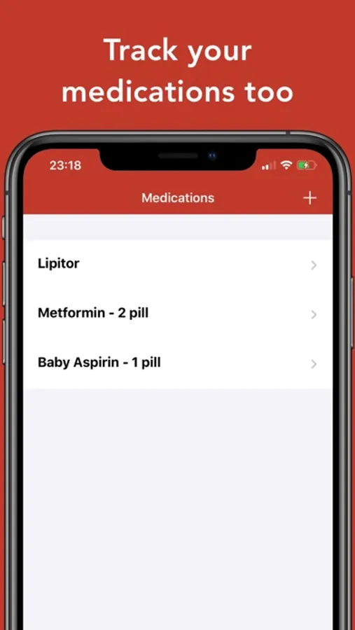 The Blood Pressure App also allows you to track your medications. Search from a list of medications, add notes, and include your dosage. This allows you to keep your list of medications with you whether it is for yourself, a loved one or healthcare professional. You can export this list of medications through a report and send to anyone.