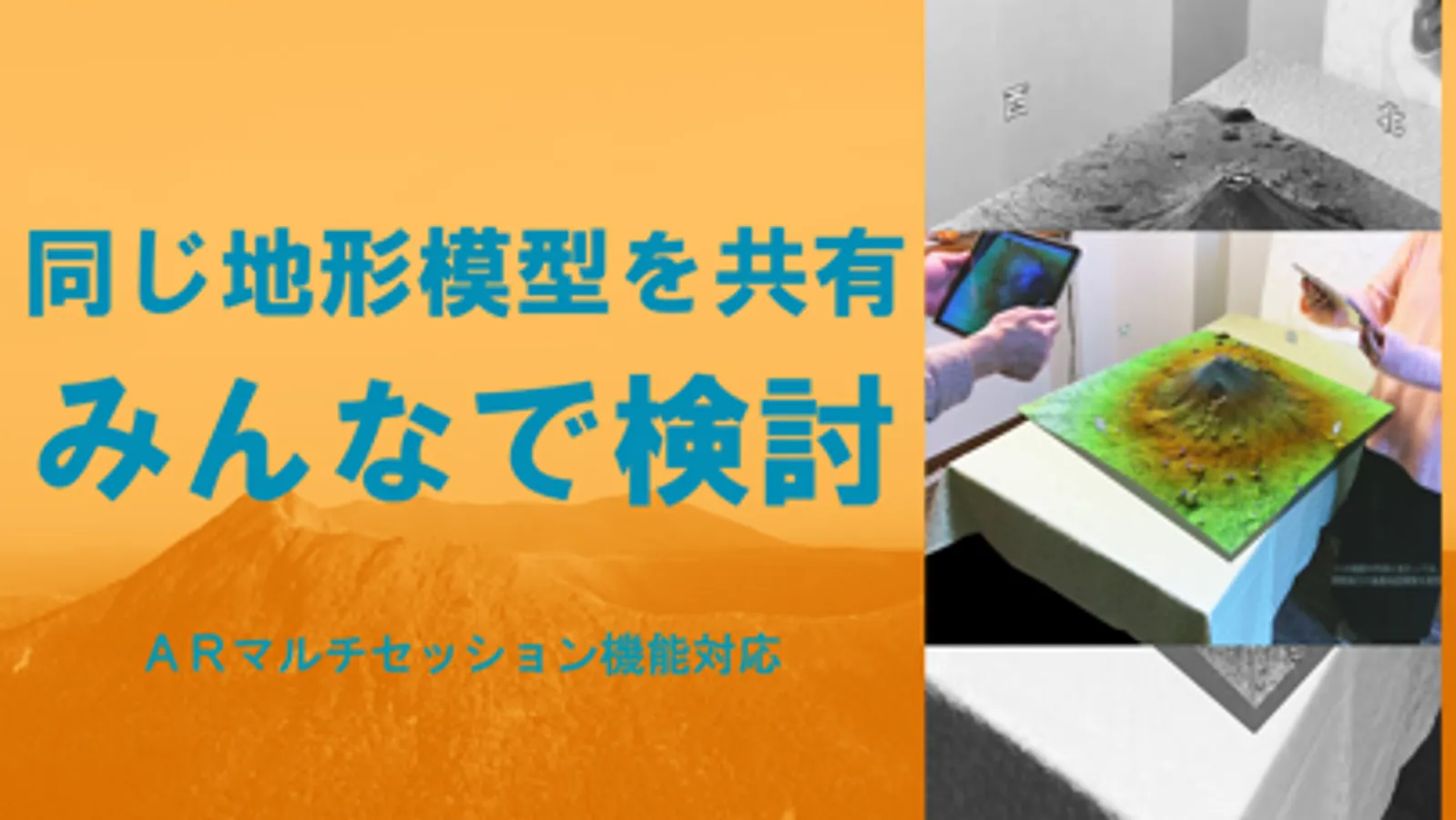 あたかも実際に机の上に地形模型が置かれているものを、みんなで見ている感じになります。