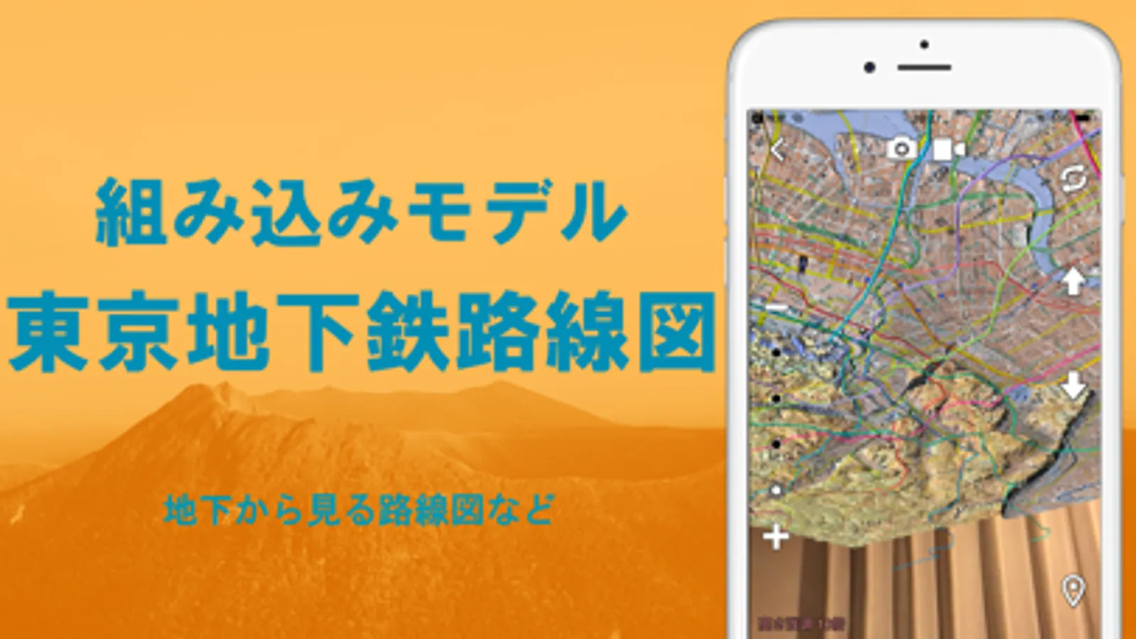 AR機能でいろいろな地図を3D地形模型として見れます。旧名:AR立体地図、地図カメラAR