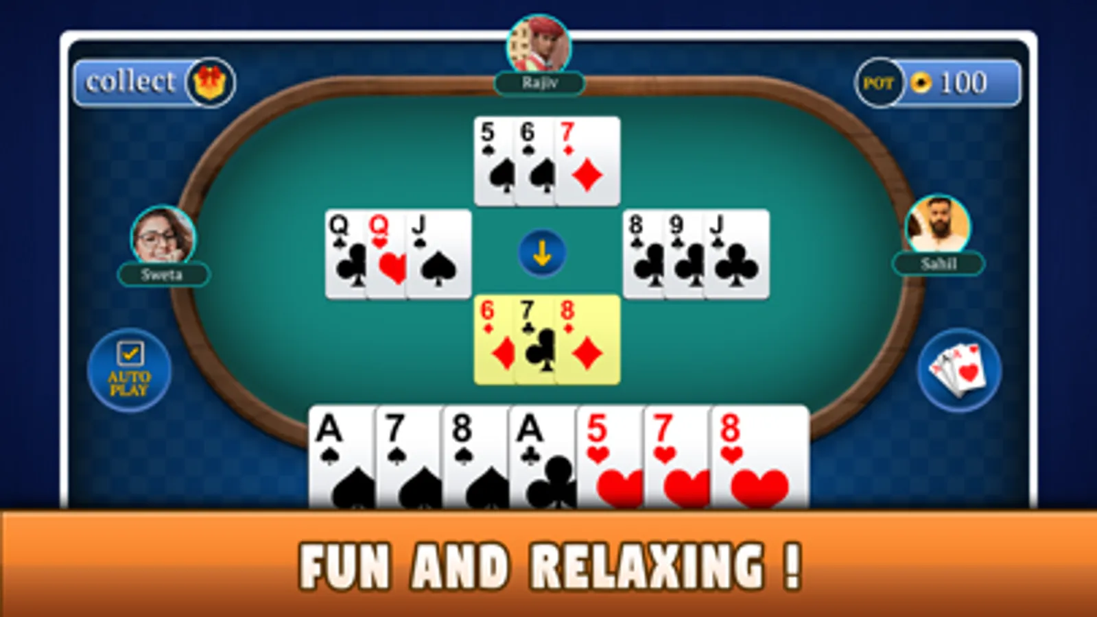 3.Then again the player throws his 3 cards and the same the winner takes it.