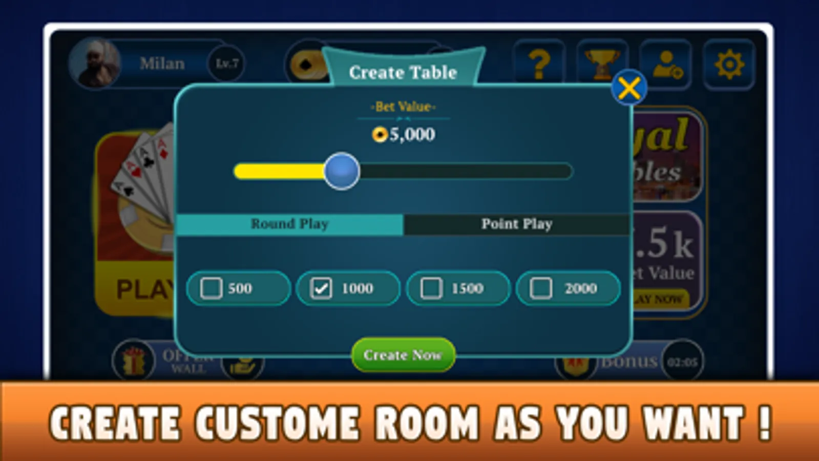 - Round Play requires number of rounds you want to play, there is no need to play till 1000 points. Highest point holder at the end of pre-selected number of rounds will be winner of the game. Obviously, you have a chance of winning big when you bet big.