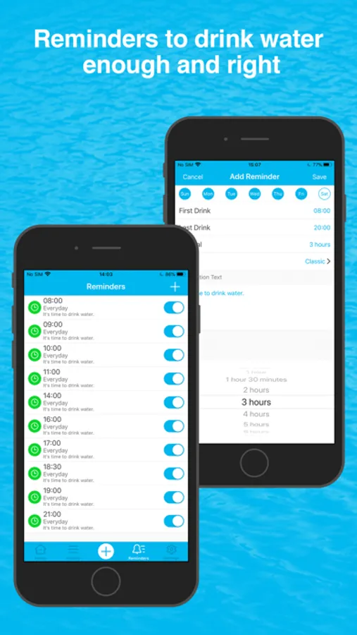 - Provides the best water schedule notifications, also supports customize the schedule.