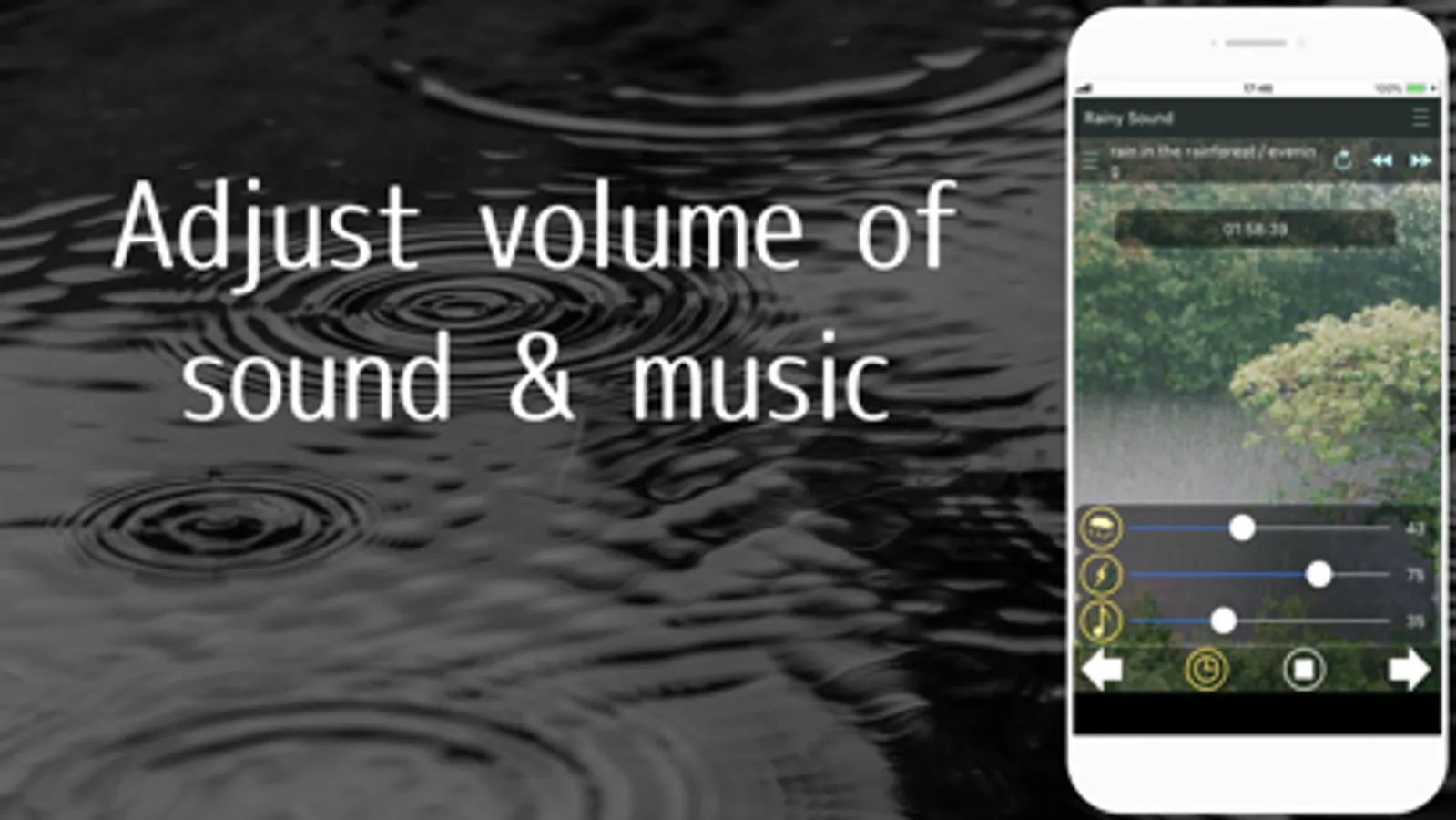 You can adjust the volume of rain, lightning and music, so you can create the ideal rain sound of your choice.