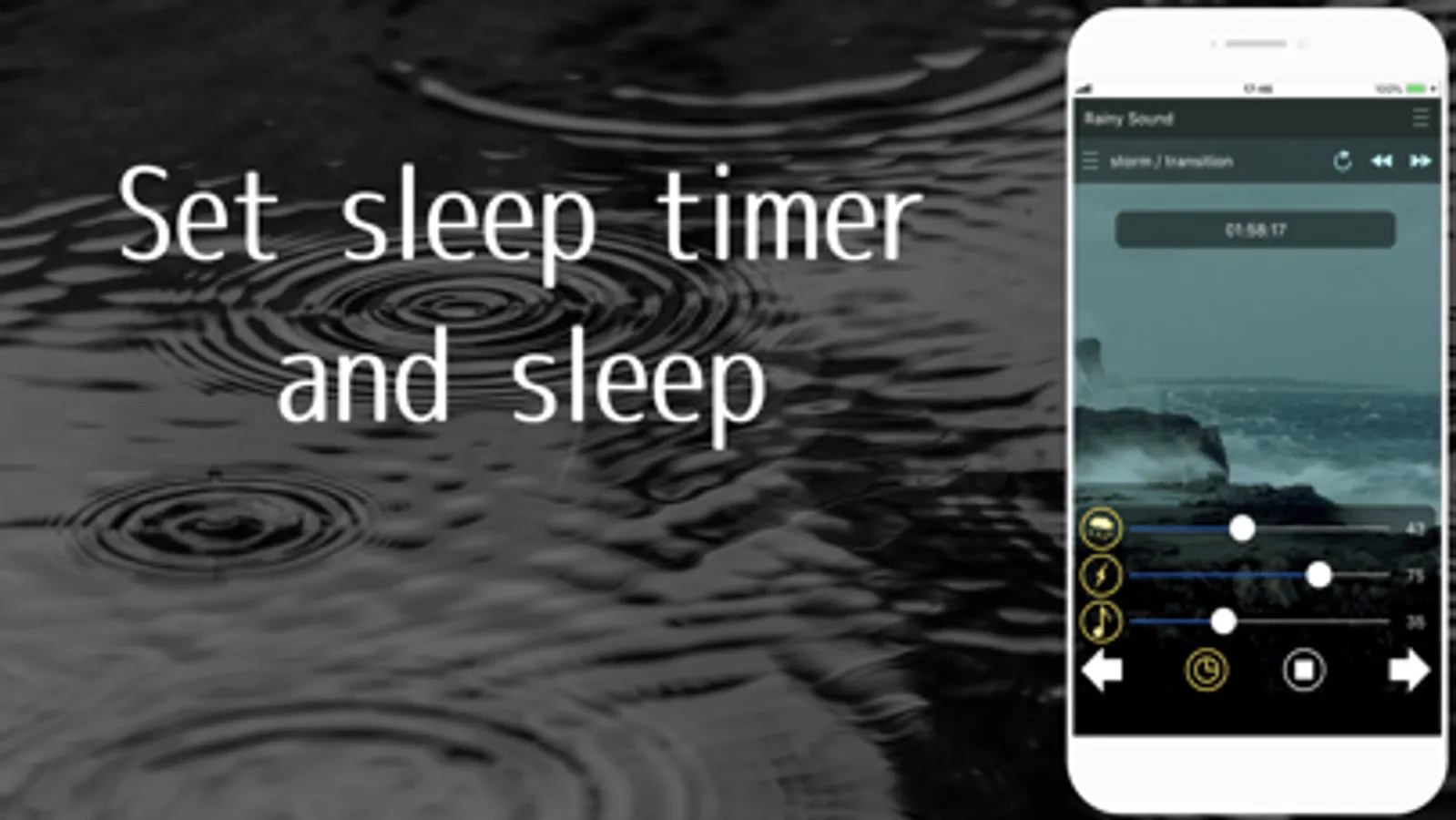 This application can make you sleep by playing a comfortable sound of rain and gentle music.