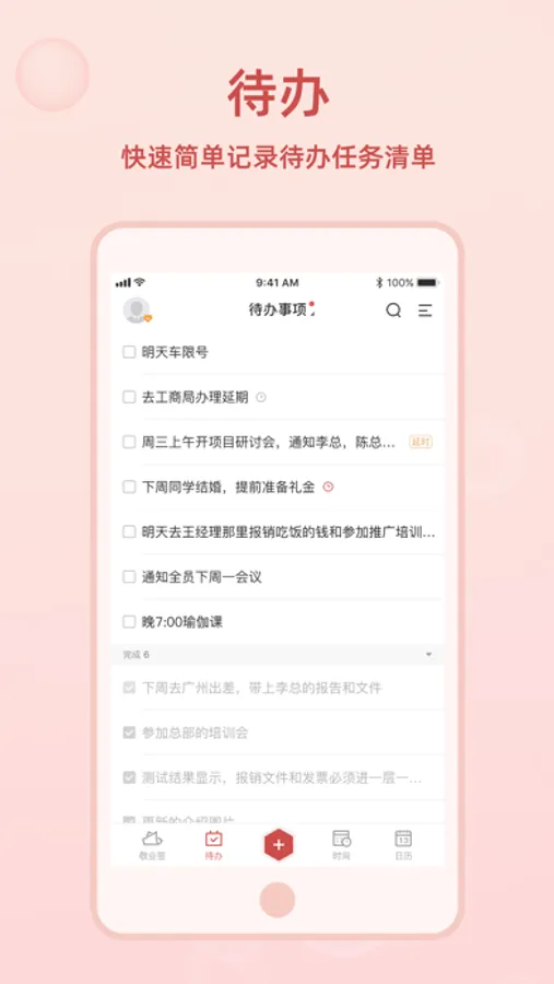 2、待办:敬业签云待办除了具备传统待办事项的记录、查看、完成功能外。增加了云服务功能为待办事项或待办任务清单提供了待办数据云同步、云储存功能。具有云待办功能的待办应用可以实现跨系统、跨设备云端同步,无论是多设备使用、还是换系统换设备,待办数据都会自动同步,不会丢失。