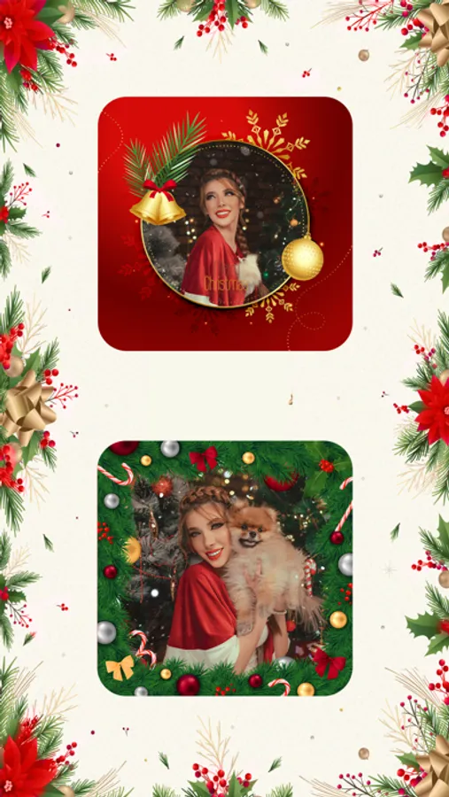 This free photo frames editor offers you square frames, polygon frames, circle frames, heart frames, star frames and more photo frames of different sizes and shapes inspired with Christmas.