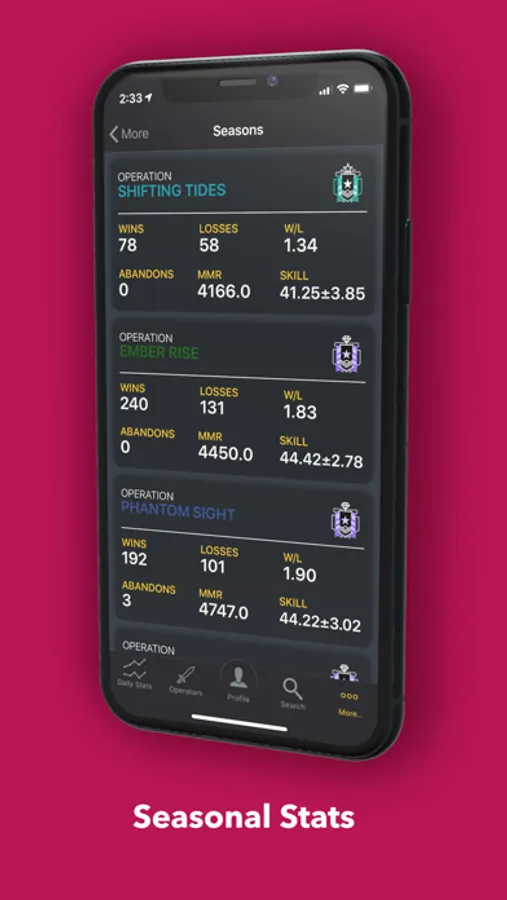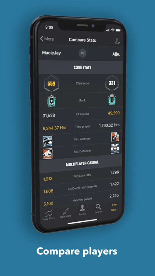 In a game such as Rainbow Six Siege, where competition is everything, being able to track your stats and daily progression is of the utmost importance. Always stay connected to Rainbow Six Siege with the R6Stats app.