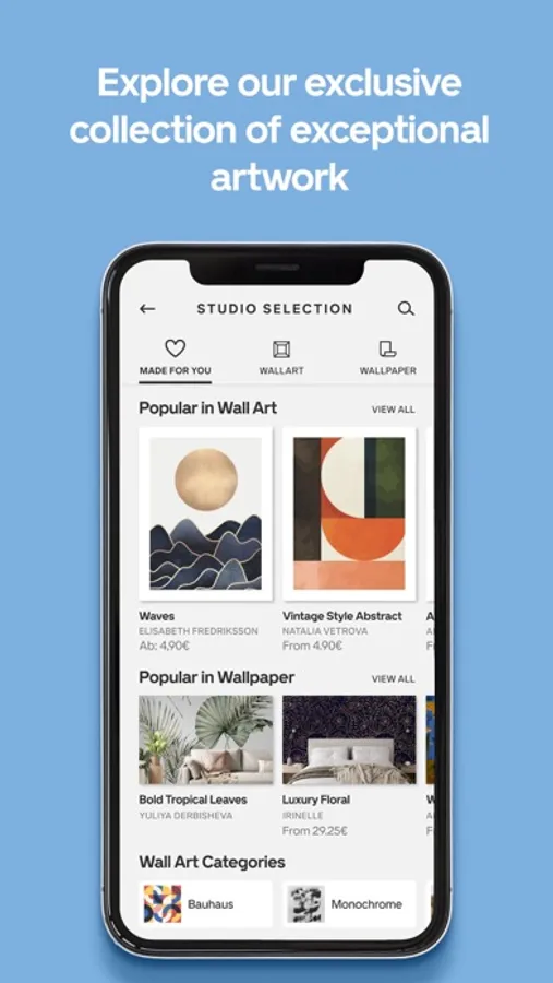 • Studio Selection – Find art that perfectly matches your taste. The Studio Selection designs were handpicked in collaboration with the world’s foremost visual experts from around the world - made by independent artists and photographers.