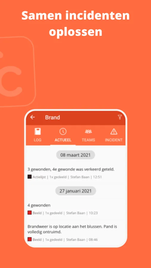 - Je kunt via de app opgeroepen worden bij een incident. In de app lees je een actueel beeld van de situatie. Wissel met je team waarnemingen uit en creëer samen een totaalbeeld.