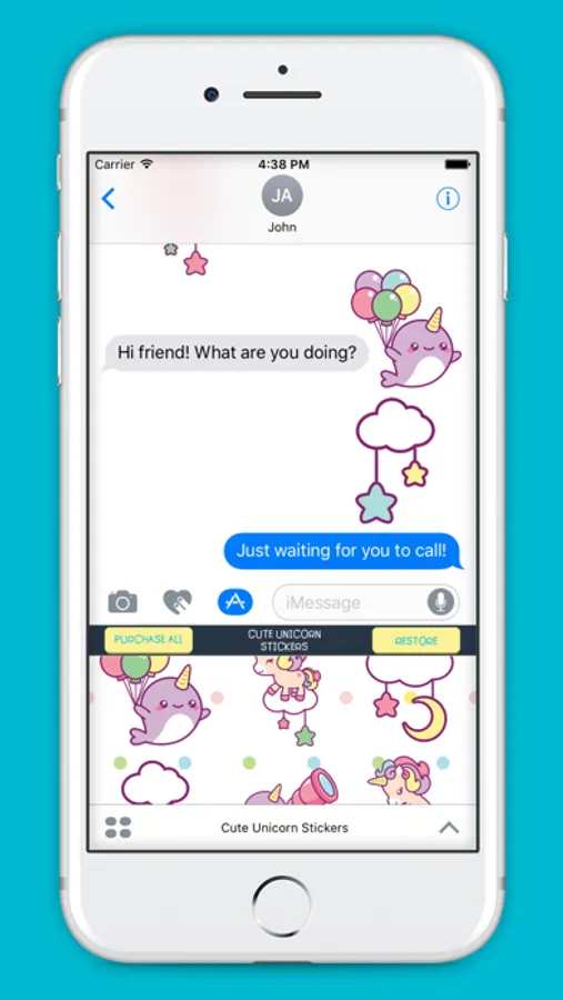 - PEEL & PLACE stickers on top or message bubbles or photos, just tap, hold and drop.