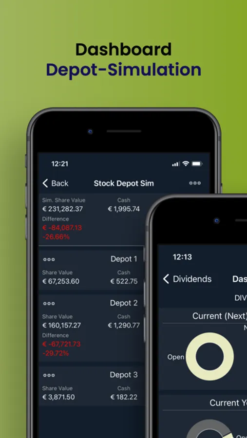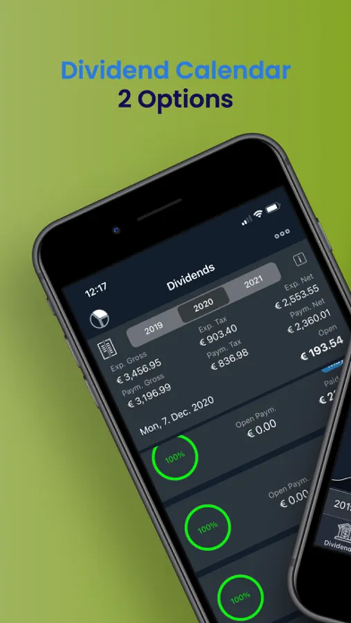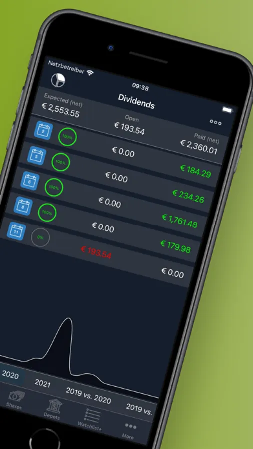 an overview with the monthly or yearly payments is created. After recording the dividend payments, it is easy to see which payments are still outstanding. An overview of the annual payments shows the development of the dividend payments of the portfolio.
