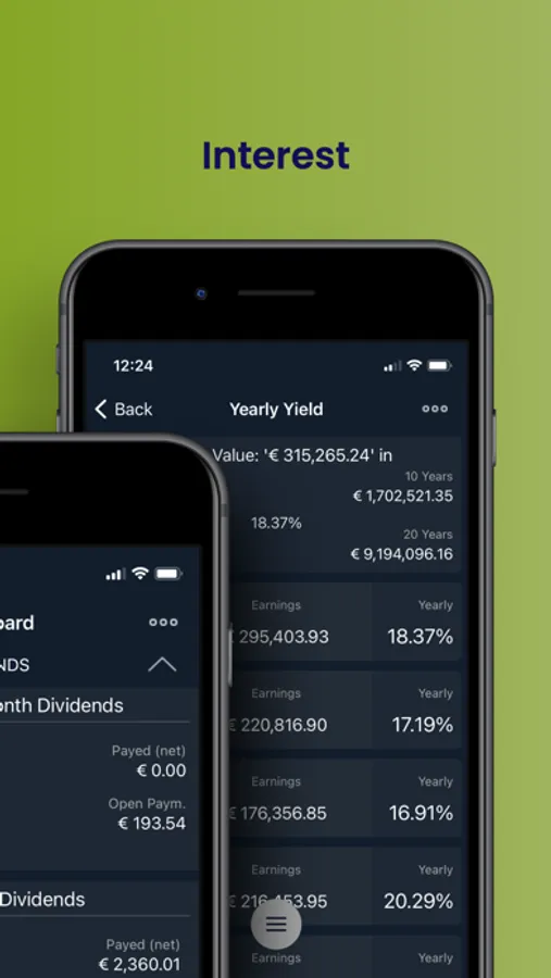 dashboard with details about dividends and performance