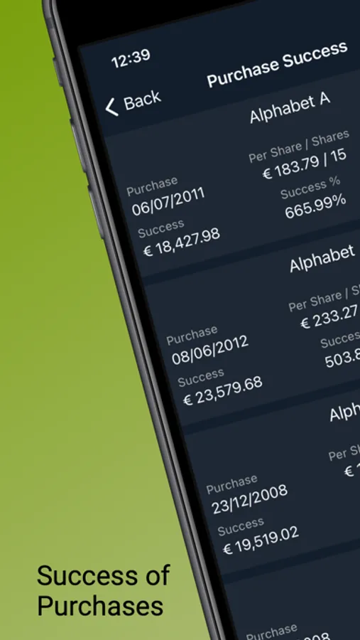 success summary of all purchases and sales for one share