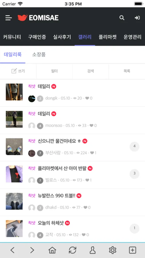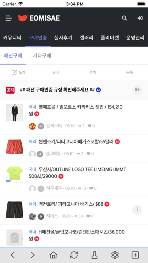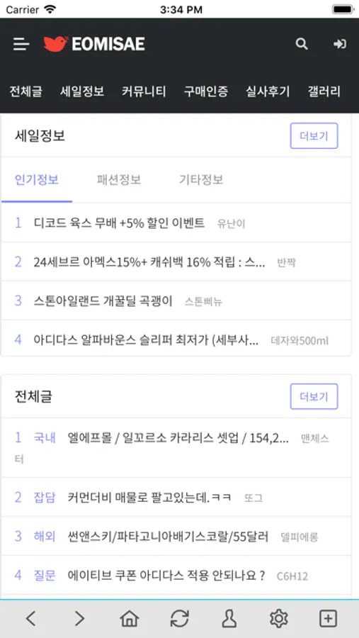 사용자들이 일상속 패션, 세일 정보 등을 실시간으로 공유합니다.