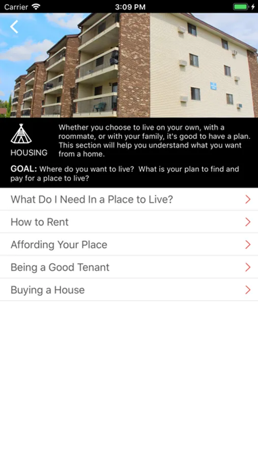 • Housing- looks at different kinds of housing for youth, explores ways to find housing, provides searches for housing options in rural and urban areas, and provides a budget template for affording housing.
