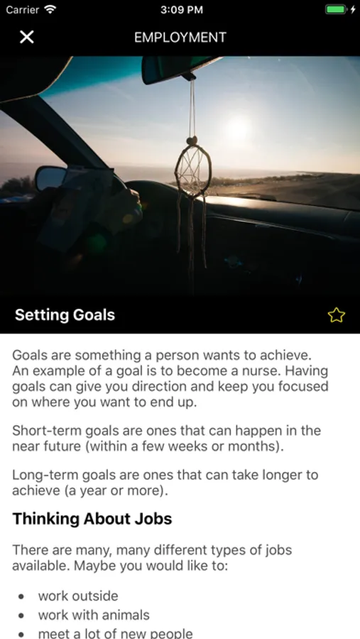 • Employment- includes a RIASEC quiz to help youth determines their strengths. Multiple resources to assist the youth in determining key skills, job searches, trends, resume building, and writing cover letters. The section looks at preparing for an interview, preparing for the work day and tax forms.