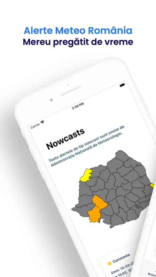 Aplicația Alerte Meteo România vă permite să vizualizați simplu și rapid avertizările meteo din România. Complet gratuit, puteți vedea toate alertele nowcast, avertizările generale precum și informările meteo emise. De asemenea, prin intermediul tab-ului "Setări", vă puteți abona la notificări push pentru a primi aceste avertizări în timp real, valabil pentru toate tipurile de avertizări*. Aceste avertizări pot fi livrate de acum și pe email** și pot fi vizualizate pe harta României**.