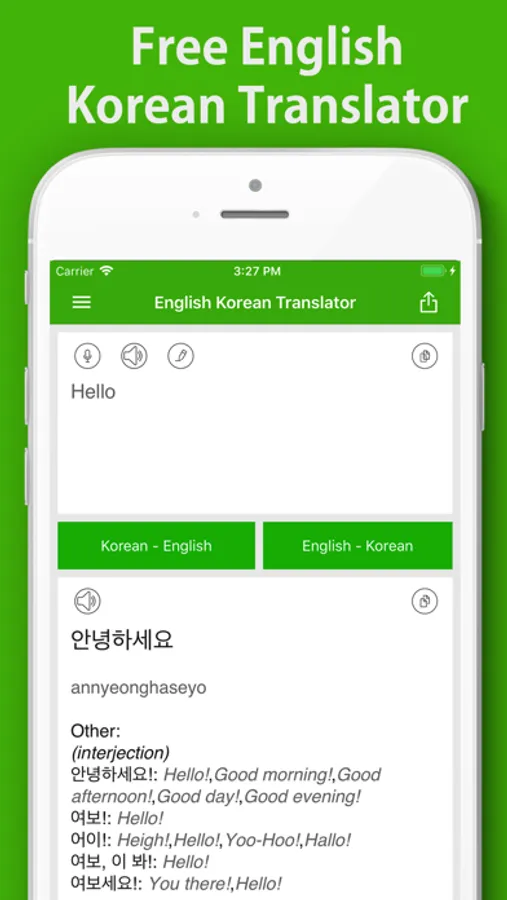 Korean English Translator - An application that helps you to translate English to Korean. You can use the application for learning, research. Besides, the application also help when you travel, study abroad, talk with foreigners.
