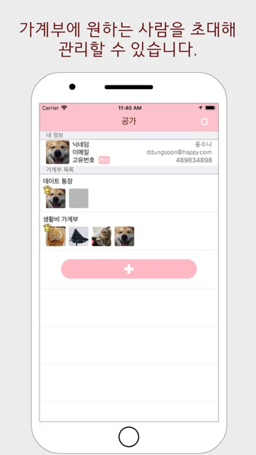 함께 사용할 수 있는 공용 가계부 공가입니다.