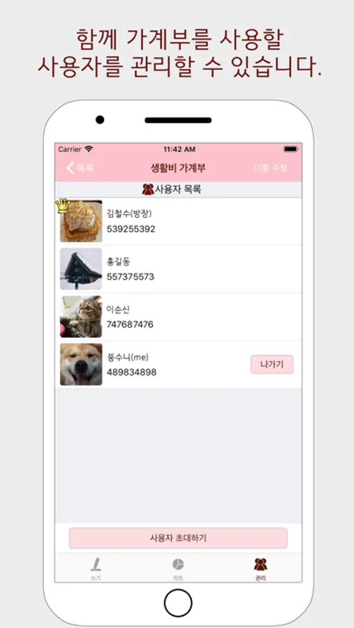함께 가계부를 사용할 상대방을 자신의 가계부에 초대할 수 있습니다.