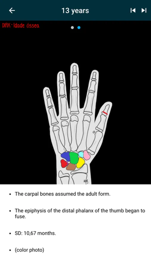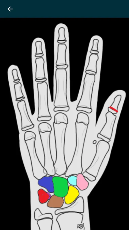 This application is based on established studies of radiology, in a simplified way by drawings, allowing agility in the understanding process of the wrist x-ray by age group.