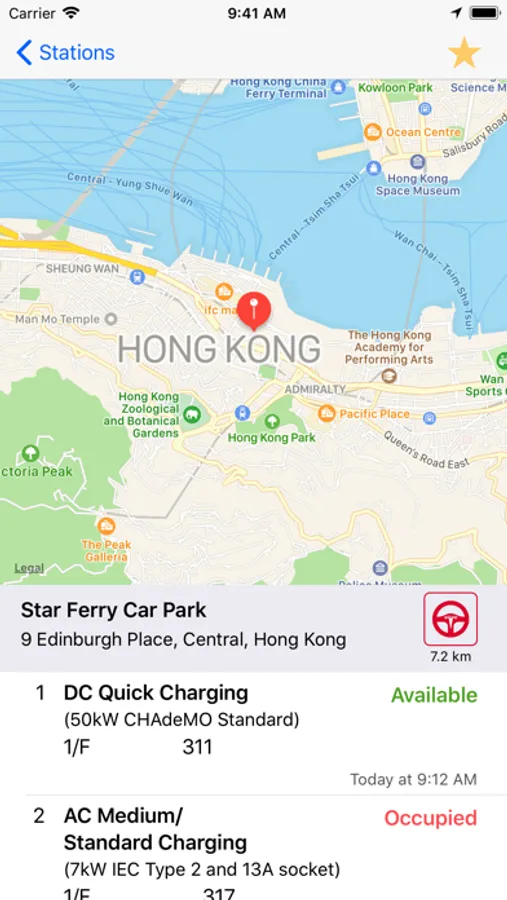 - Floor, parking space number and charger's mode of each charger (HKE stations only)