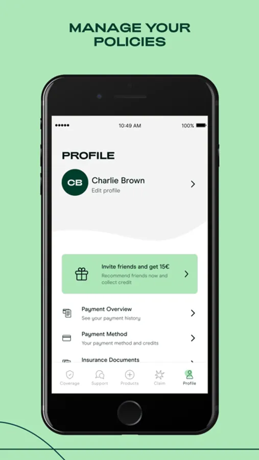 Invite your friends and receive €15 in credit when they take out their first insurance policy – and they will also get €15!