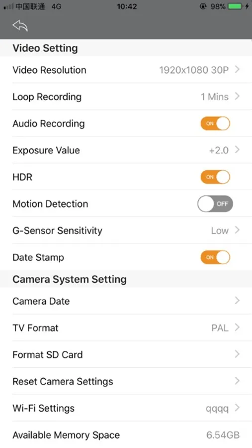 • Configure various settings (e.g. G-Senor Sensitivity, Recording Time, Wi-Fi settings, etc.) of your Dashcam.