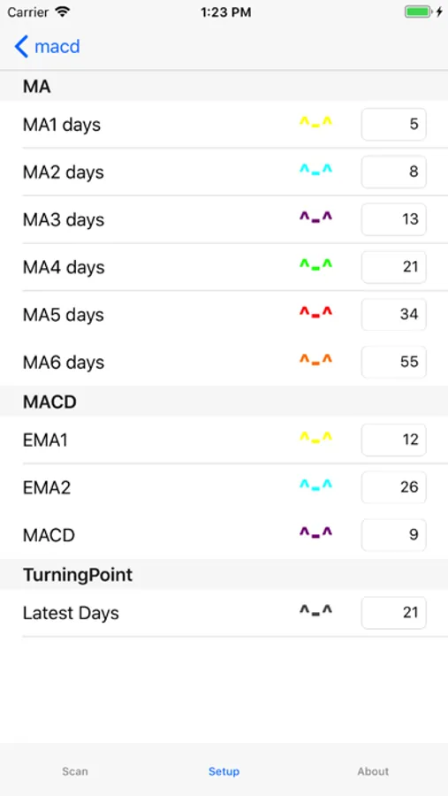macd is an application that you can use to scan your selected stocks(or others) by your selected MACD(DIF/DEM/MACD), SMA, KD, RSI choices and list those matches your choices for buy-in or sell-out strategies.
