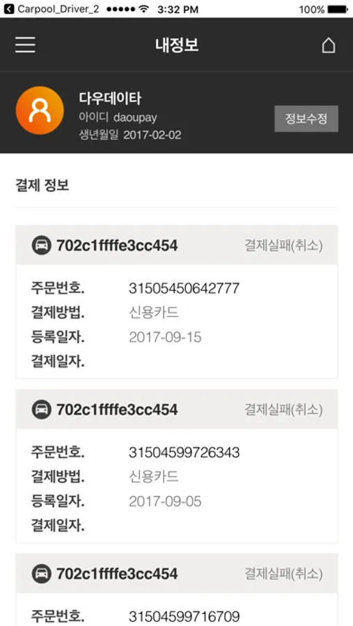 6. 블랙박스 자가진단 정보 ? 블랙박스에서 자가진단시 발생한 고장정보(녹화오류, SD메모리오류, 카메라렌즈오류, 기타 등등)를 실시간으로 안내 받을 수 있다.