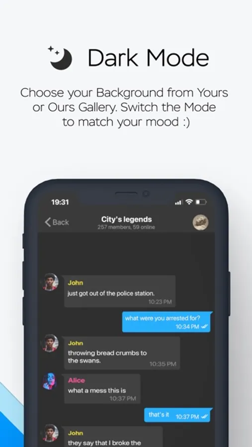We connect you to your friends and colleagues without storing your messages on any servers. All of your data is available only on your device!