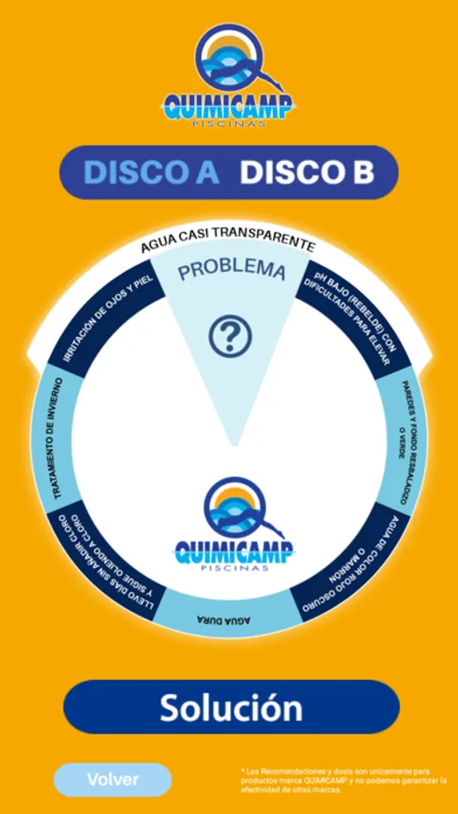 La primera parte y más importante, es un disco de soluciones que nos mostrará problemas habituales en nuestra piscina y nos dará una solución a dicho problema.