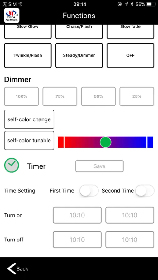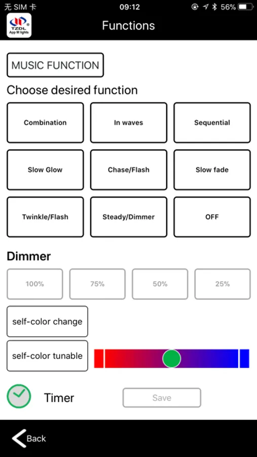 This App only works on iOS devices that support Bluetooth 4.0 or higher ;for iOS devices,its need 7.0 or higher version. list of all compatible iOS device follow: - for iPhone: Model 4S, 5,5C,5S,6 or newer , - for iPad: Model Ipad 3,Ipad air or newer device ; Characteristic/Function: - this App have 4 language can be selected: English, French, Germany, Dutch on the right corner of the seek interface; - this App also can self- named the light set name depending on your personality and needs on edit interface. -this system have two timer setting function, you can free to set your desired light set operating time. -you can control 1 lighting set or control max. 8 lighting set by checking method to creat control group in one setting. - light control: this App have music function; 9 tradional function; dimmer function; self-color changing, and self-color tunable function. if you have any question, please can always contact us or feedback at http//:www.cntzdl.com