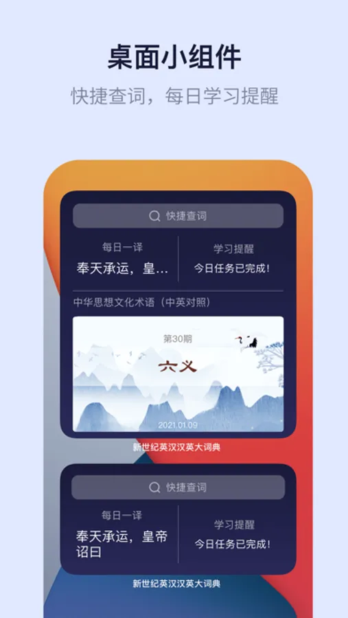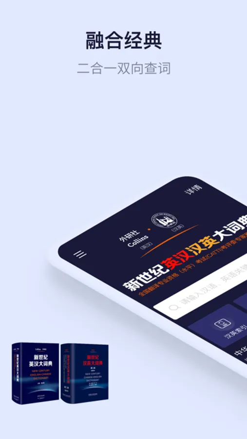 本应用融合《新世纪汉英大词典》和《新世纪英汉大词典》两部经典翻译工具书,权威性有保障。
