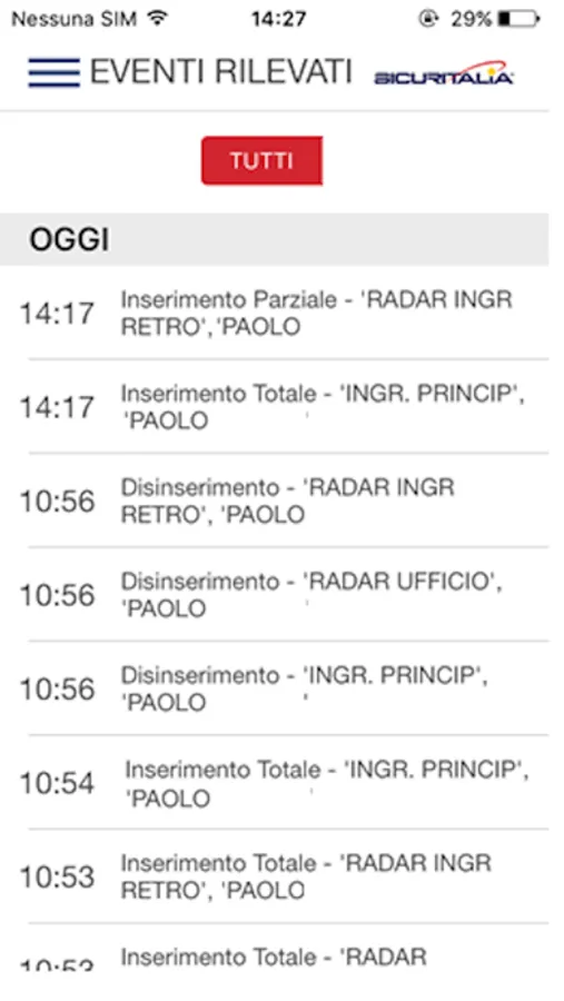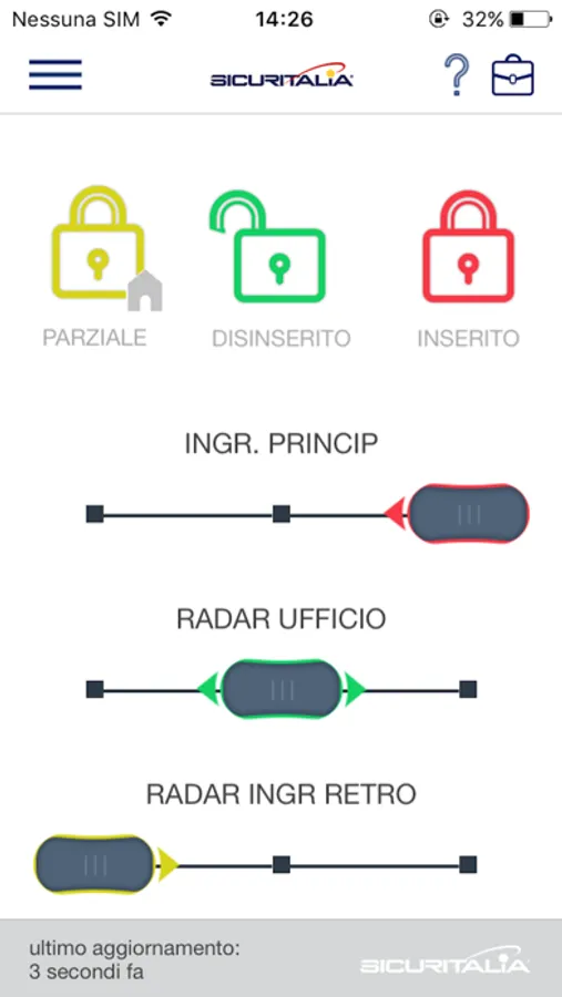 • controllare in tempo reale se il tuo sistema di sicurezza è inserito o disinserito
