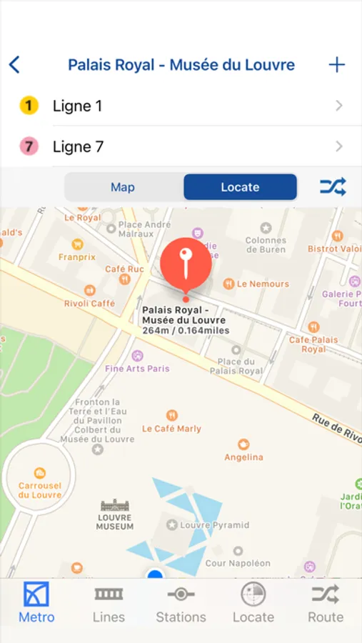 ◉ The application locates the nearest metro stations from your position in Paris. You can also provide an address in Paris, all the stations closest to that address will be displayed.