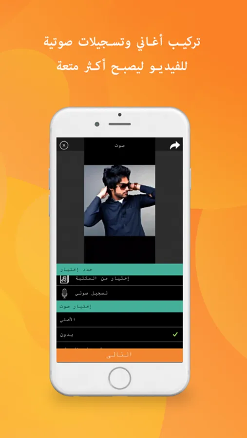 إضافة الاغاني و الؤثرات الموسيقية و التسجيلات الصوتيه هذه الخاصية ستمكنك من وضع لمسات فنيه تزيد الإثارة و التشويق للفيديو حيث أن تطبيق المصمم - برنامج تحرير الفيديو يمتلك مجموعة كبيرة من الأدوات ستتمكن من إضافة موسيقى خاصة من ألبوم الموسيقى المتوفرة على جهازك، و أيضاً يمكنك إضافة تسجيلات بصوتك مباشرة على الفيديو.