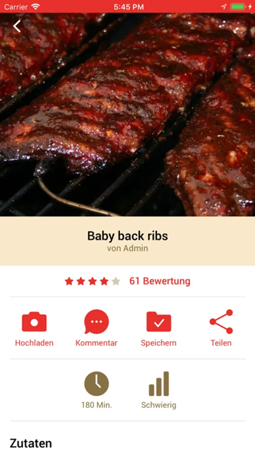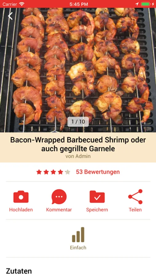 - Einzelrezeptansicht: Hochladen von Bildern, Abgeben und Ansehen von Kommentaren, Lesezeichen setzen und Rezepte teilen. Bei sehr vielen Rezepten kann auch einfach die Anzahl der Portionen geändert werden und die Mengenangaben werden automatisch umgestellt.