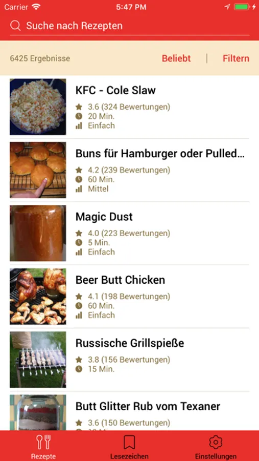 - Sortierung nach: Alphabet, Erscheinungsdatum, Bewertung, Beliebtheit und Zubereitungsdauer