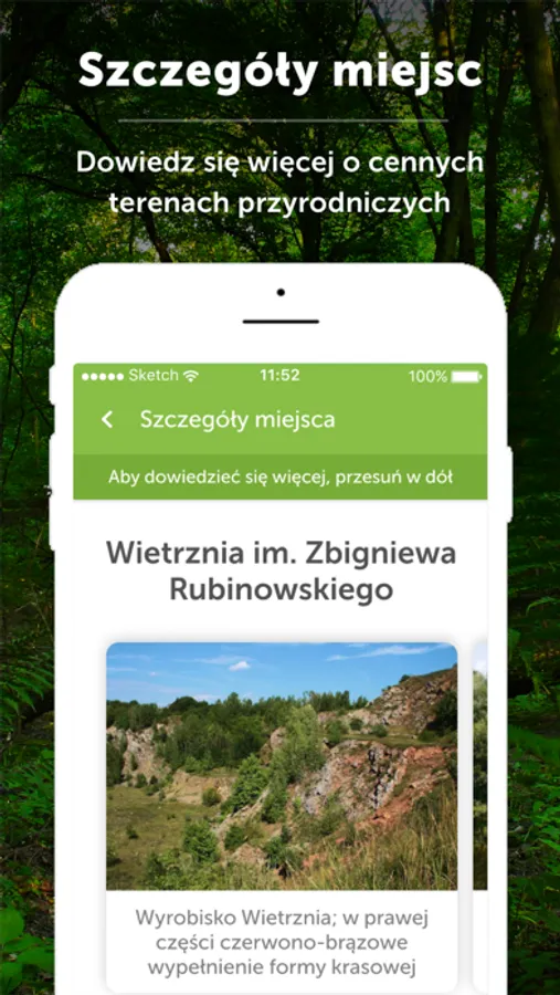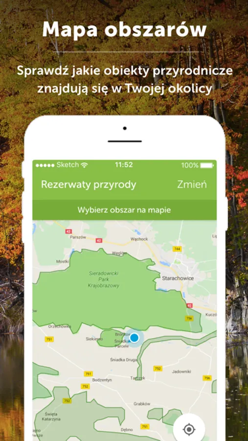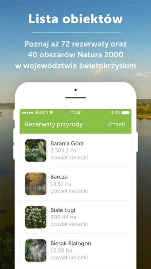 Aplikacja ma na celu pobudzenie zainteresowania obszarami Natura 2000 i rezerwatami przyrody w województwie świętokrzyskim. Daje możliwość lokalizacji położenia względem danej formy ochrony przyrody. Pozwala poznać najważniejsze dane dotyczące rezerwatów przyrody i obszarów Natura 2000.