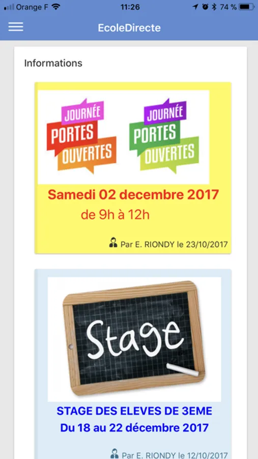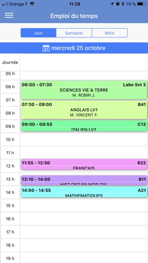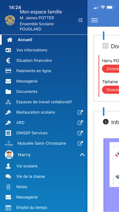 Toujours dans votre poche, il est possible pour les élèves et les familles de connaitre immédiatement l'emploi du temps détaillé en temps réel, de consulter le cahier de textes, la messagerie, les notes, les moyennes, les événements de la vie scolaire ...